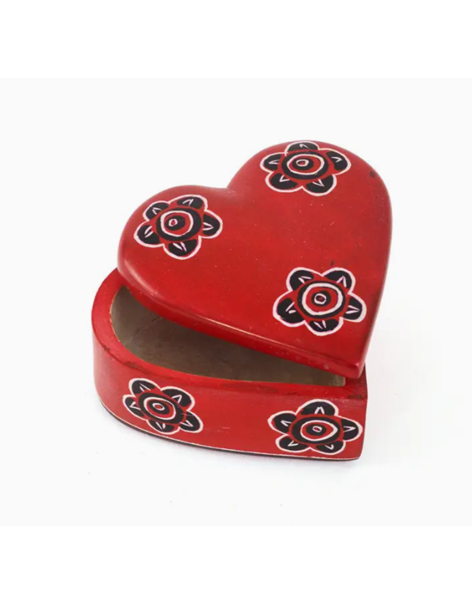 Kenyan artisans handcraft an uplifting decorative keepsake box by carving soft soapstone and adding a fanciful hand painted floral motifs.