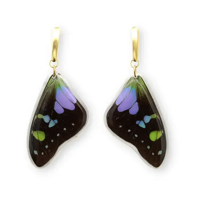 Exotic earrings made with real butterfly wings of the Purple Spotted Swallowtail -Graphium weiskei- species, considered the only true purple butterfly in nature.