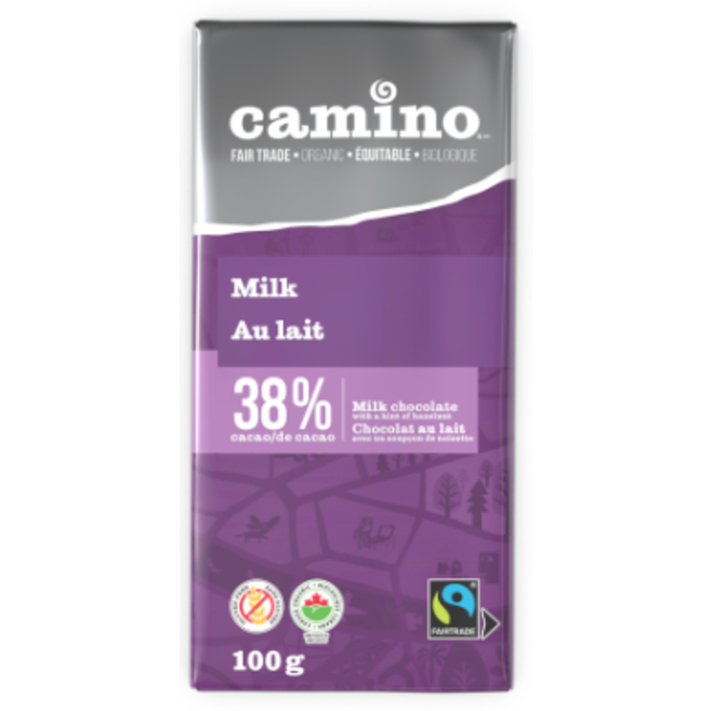 Ingredients: Whole milk powder, Sugars* (golden cane sugar*, whole cane sugar*), Cacao butter*, Cacao mass*, Ground hazelnuts, Ground vanilla beans*. Minimum 38% cacao. *Fairtrade certified.