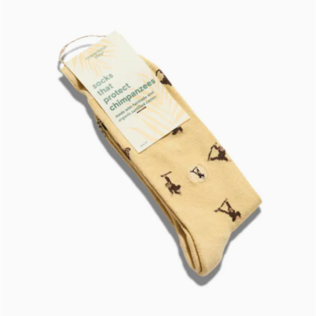 Add a playful swing to your style with these yellow socks featuring cheeky chimpanzees and support their conservation. Each pair works to protect our planet's wildlife and their critical habitats with Conservation International.