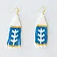 The Katy Seed Bead Earrings feature an adorable flower design made with turquoise and white beads threaded in an incredibly delicate and intricate pattern.