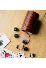 This dice cup w/ 6 dice is a stylish way to keep dice safe and easy to find as well being a rolling companion for favorite games!