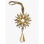 It features a whimsical sun with a simple cut-out design and a cone-shaped bell at the bottom. The chime hands on a jute thread and has an antiqued gold finish. This design is simple yet stunning at the same time. If using outdoors we recommend spraying with a clear coat to prevent rusting. Metal chimes are made from flat sheets/pieces of scrap metal and created by using basic hand tools and machinery. Metalwork is a craft practiced in Behat in the northern state of Uttar Pradesh, India.Â