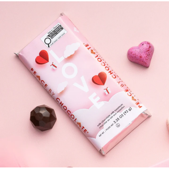 Peace is beautiful in every language — and so is love! Our Amour Love Bar boasts smooth dark chocolate, loaded with crunchy hazelnuts. A perfect treat for friends and loved ones alike.