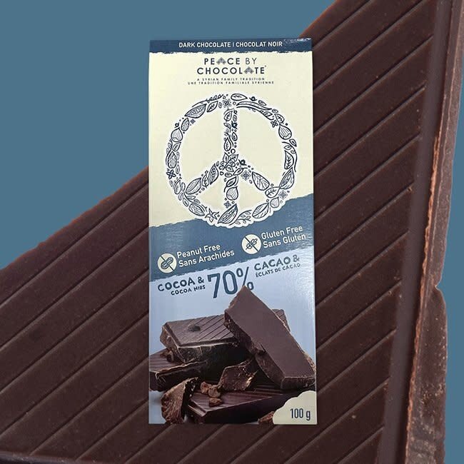 Our family is proud to introduce the SAFE Bar, a slim peanut and gluten free 70% cacao dark chocolate 100 gram bar - our darkest chocolate yet! We have always believed the taste of peace should be something everyone can enjoy, but our factory has always made that impossible. Now, we’re able to deliver this tasty 70% cacao dark chocolate bar.