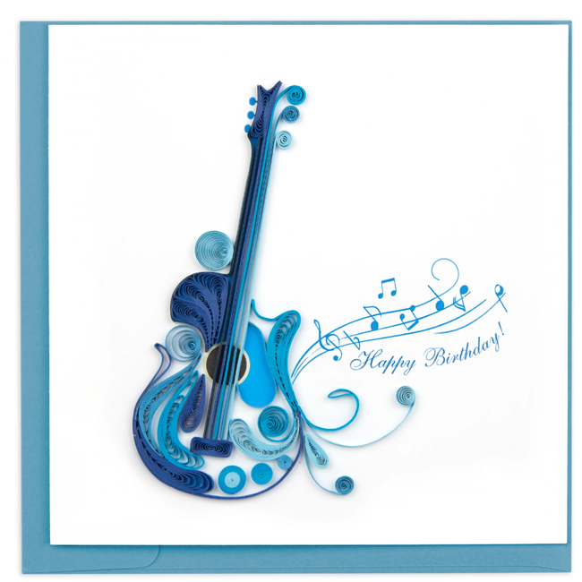 Tell your musical friends they rock with our Quilled Birthday Guitar Card! Featuring a blue guitar and flying notes, this card is sure to be music to their ears. This card also reads "Happy Birthday" on the front.