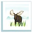 A thoughtful choice for the nature lover in your life. A moose quilled in shades of brown with white antlers in a field of grass with a printed water paint background of the sky in the background.