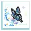 This beautiful design is quilled using a variety of blues, whites, and blacks to make up the butterfly’s wings, which is seen sitting upon a watercolor background made up of different flowers. The words “With Sympathy” run across the bottom right.