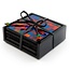 Set of 4 handmade square coasters made from a spectrum of rainbow coloured glass mosaic tiles, in holder.