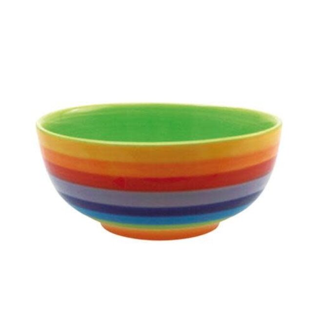With bold rainbows and a beautiful blue inner colour, this bowl is a great way to add extra eco-friendly brightness to your mealtime favourites. Each piece is made and painted by hand, making every bowl truly unique and personal.