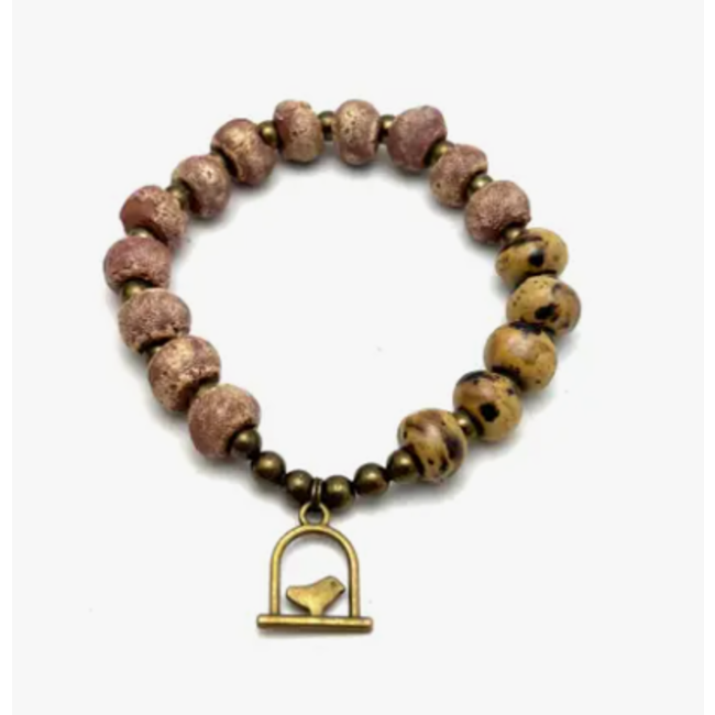 Handmade Haitian clay beads are fired with beautiful bright glaze colors.