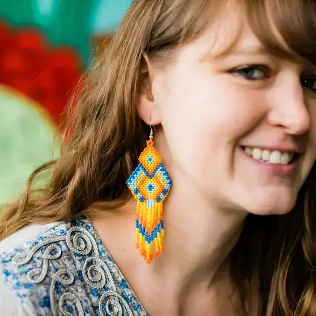 The Tipico Earring is hand-beaded in a traditional Guatemalan design.