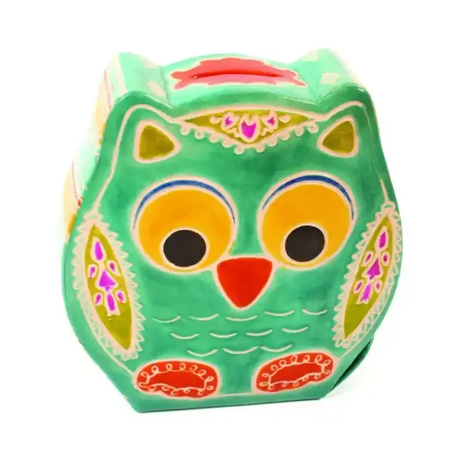 Colourful handmade goat's leather money box.
