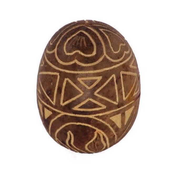From the Wingo tree, this nut is cleaned, dried, and filled with beans.